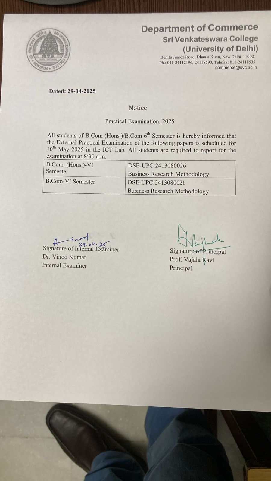 | 215. | NOTICE - B. COM(HONS) AND B. COM SEMESTER 6 EXTERNAL PRACTICAL EXAMINATION SCHEDULE - BUSINESS RESEARCH METHODOLOGY | Notice - B. Com(Hons) and B. Com semester 6 external practical examination schedule - Business Research Methodology |