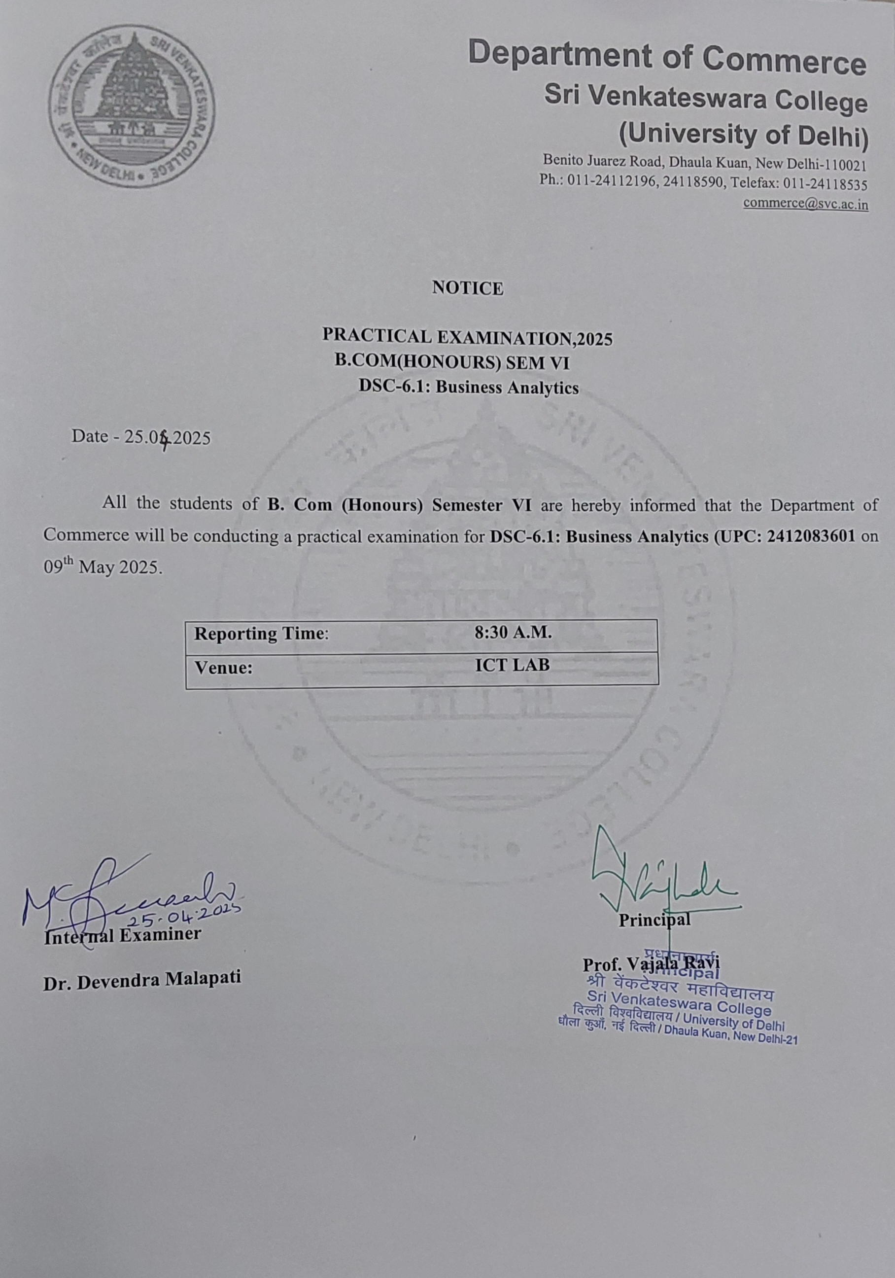 | 218. | NOTICE - B. COM(HONS) SEMESTER 6 EXTERNAL PRACTICAL EXAMINATION SCHEDULE - BUSINESS ANALYTICS | Notice - B. Com(Hons) semester 6 external practical examination schedule - Business Analytics |