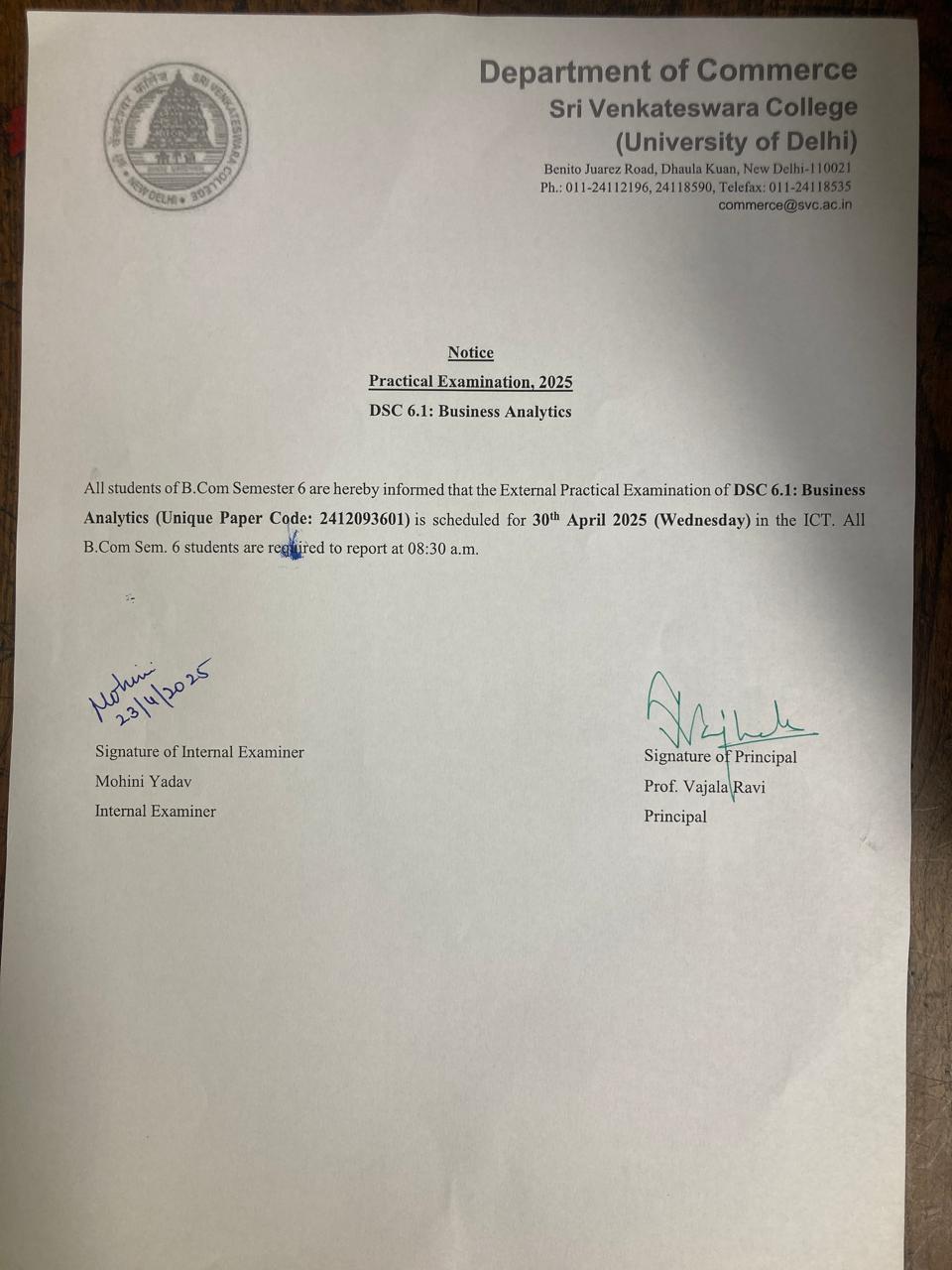 | 221. | NOTICE - B. COM SEMESTER 6 EXTERNAL PRACTICAL EXAMINATION SCHEDULE - BUSINESS ANALYTICS | Notice - B. Com semester 6 external practical examination schedule - Business Analytics |