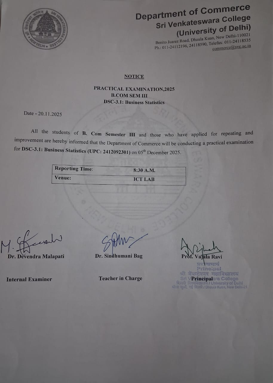 | 59. | NOTICE - B. COM(P) SEM-III - (BUSINESS STATISTICS) PRACTICAL EXAM NOV-DEC 2025 | Notice - B. Com(P) Sem-III - (Business Statistics) Practical Exam Nov-Dec 2025 |