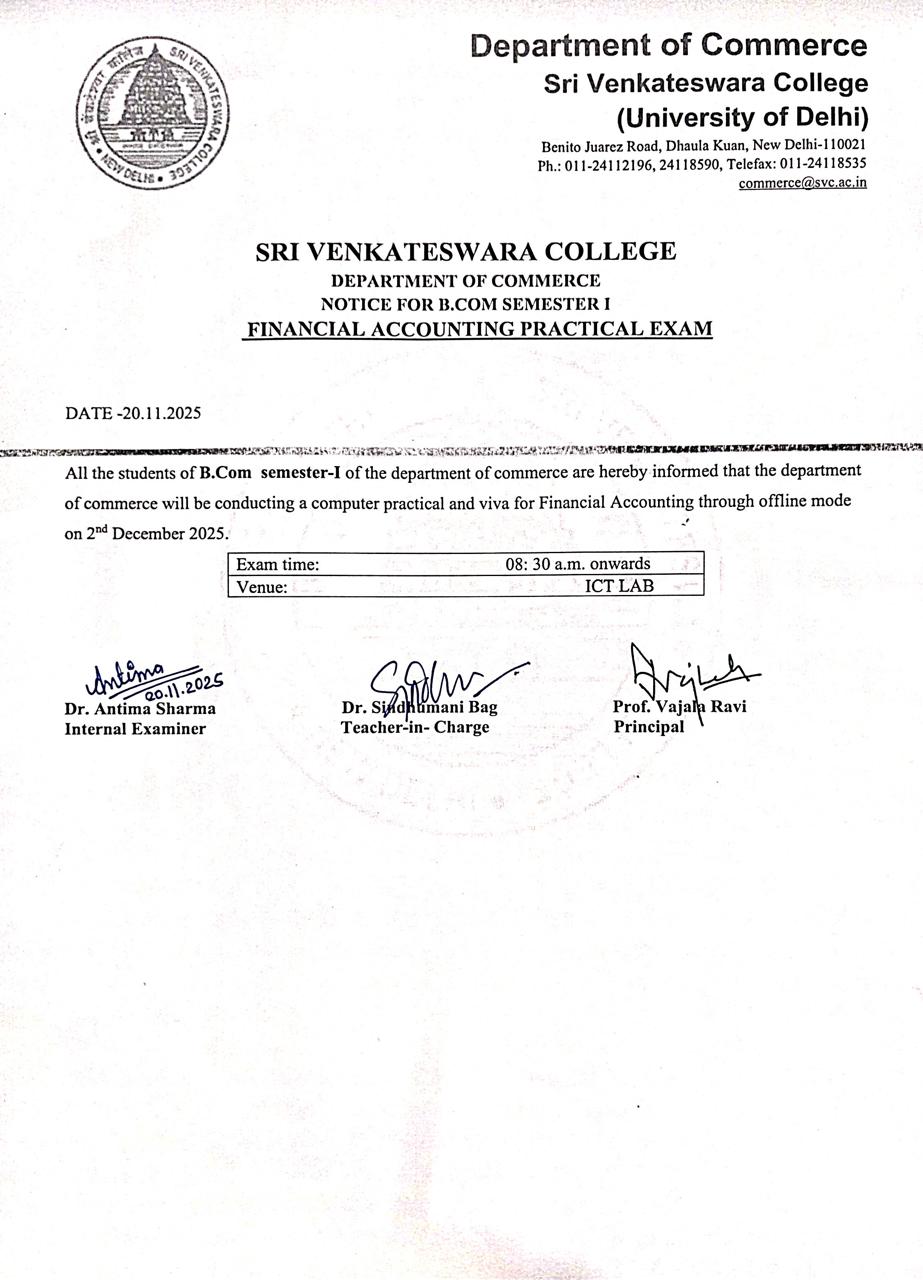 | 67. | NOTICE - B. COM(H) SEM-I - (FINANCIAL ACCOUNTING) PRACTICAL EXAM NOV-DEC 2025 | Notice - B. Com(H) Sem-I - (Financial Accounting) Practical Exam Nov-Dec 2025 |